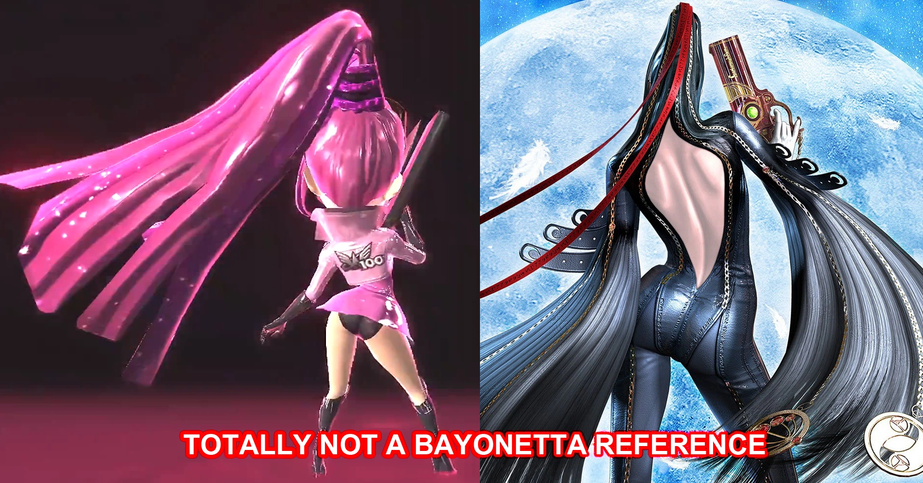 Pink striking Bayonetta's pose