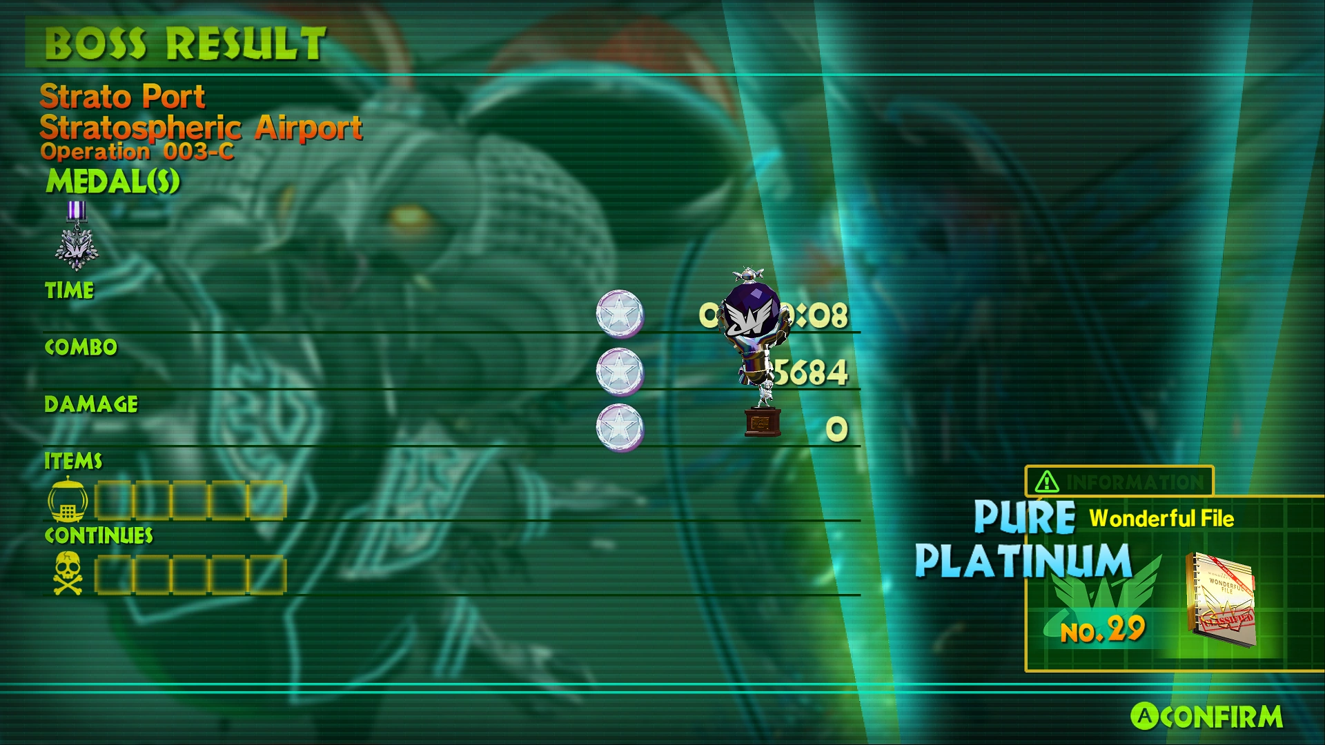 When any of the 5 Secret Wonderful Ones that automatically give you their Wonderful File are unlocked on the Operation Results screen, the message displaying your newly acquired Wonderful File prevents your Award from appearing correctly, as if it's been pushed into the middle of the screen by the message.