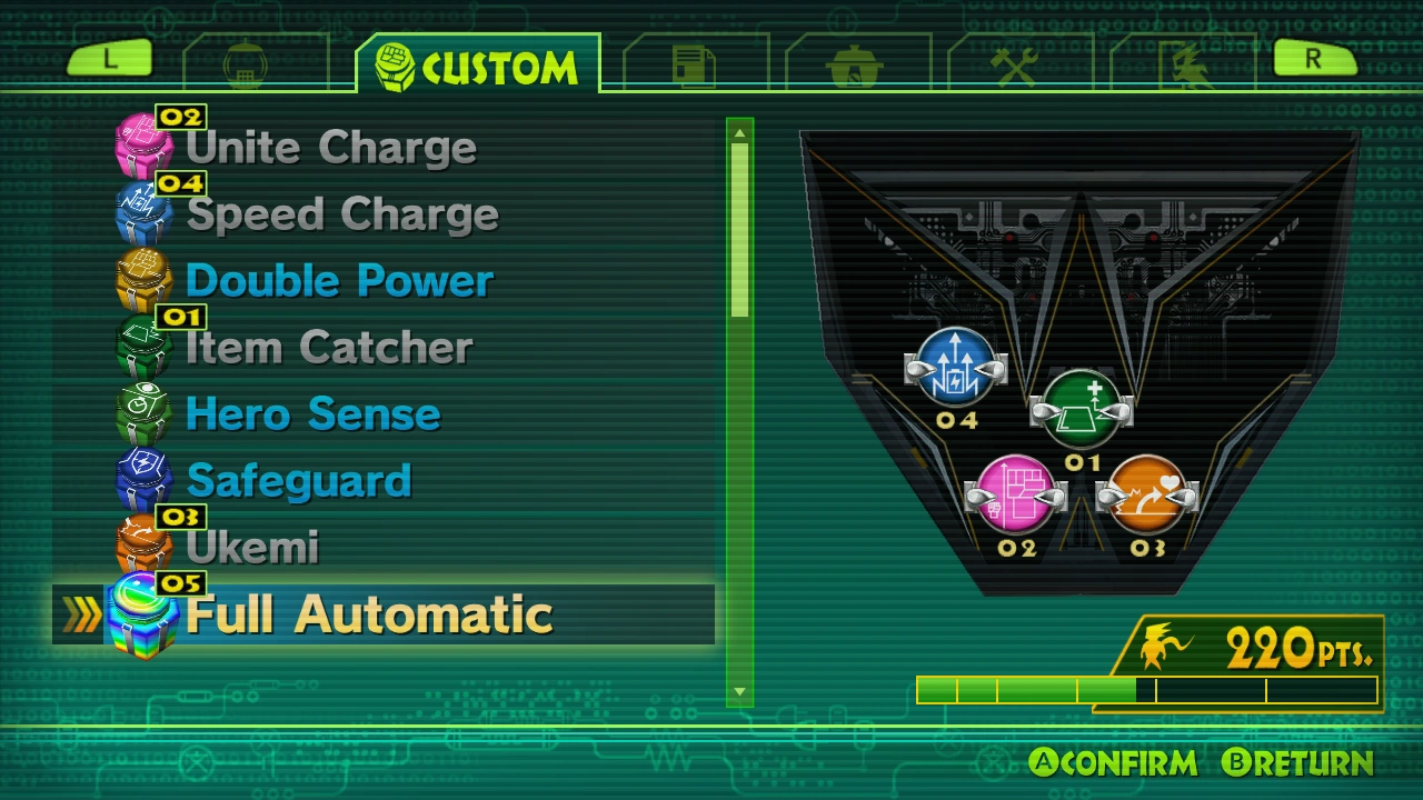 When the Full AutomaticCustom Block is obtained in the Wii U Version of the game, it is automatically equipped into the first open Custom Slot. However, this can be a slot that has not actually been unlocked yet, which may cause some confusion if you've already played a higher difficulty first. This no longer occurs in the Remastered Version of the game as Full Automatic is no longer automatically equipped in this way.