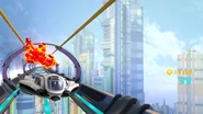 If you manage to land on top of the Wonderful Mart at the end of Operation 004-A while holding an Enemy Weapon, its opening doors can push you off the path and into the abyss below, causing you to respawn. Unlike in other levels, there's also no invisible wall preventing you from overshooting the Wonderful Mart, making it possible to see the unfinished end of the path beyond it if you manage to go far enough.