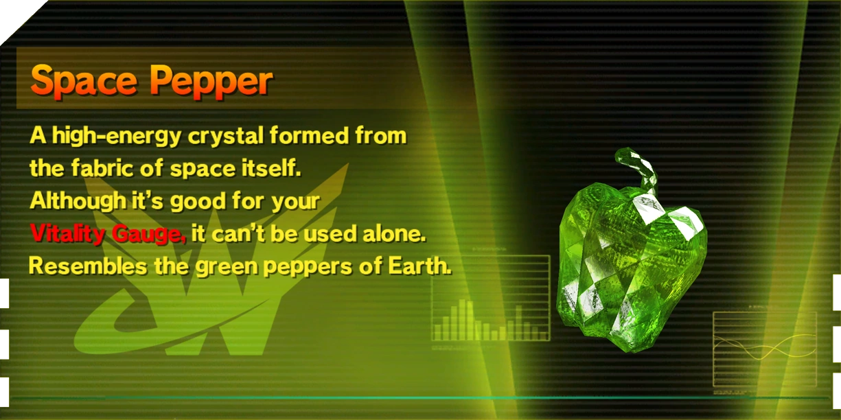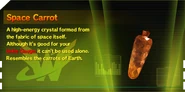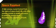 Space Eggplants are crafting items that can be found in almost every level of the game, usually either placed out in the open or by breaking objects. Space Vegetables can be used in the MIXER section of the pause menu to create various consumable items depending on the combination of Space Vegetables used.