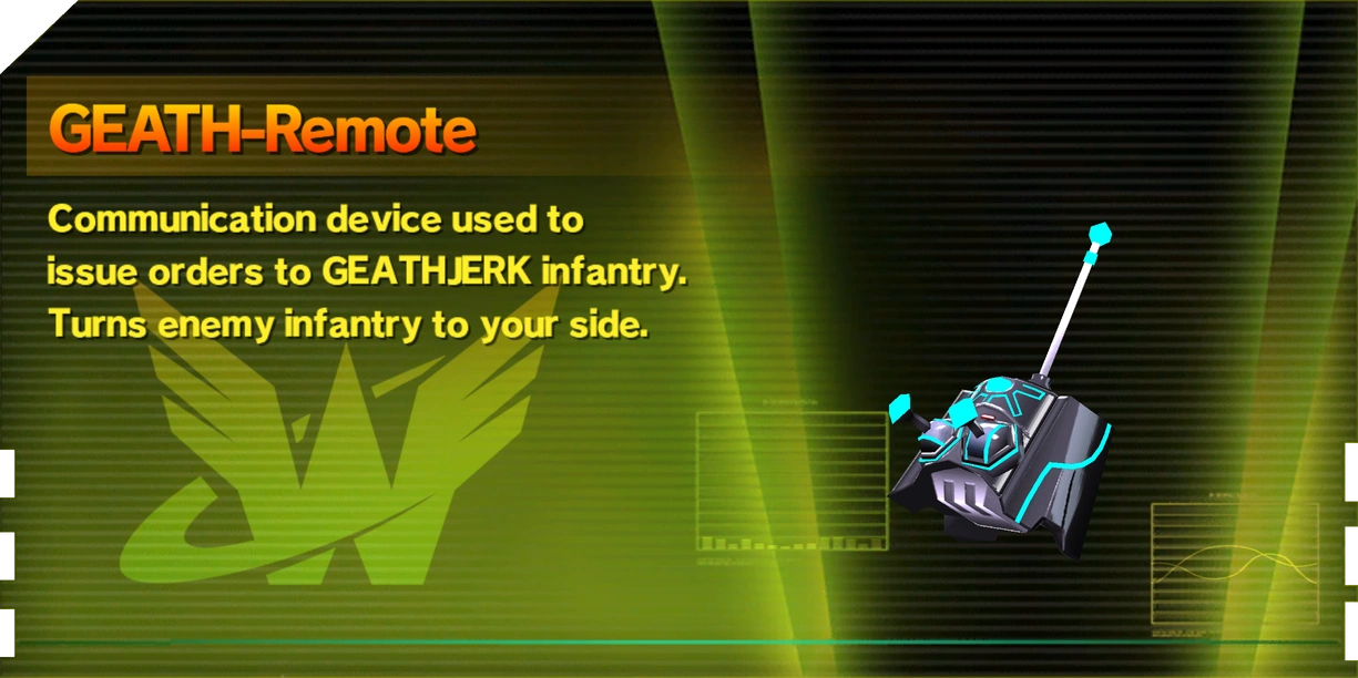 - Unused icons and an unused voice line that can still be found in the game files suggest that GEATH-Remotes were originally a consumable item kept in the inventory, and that they could have been purchased from the Wonderful Mart.