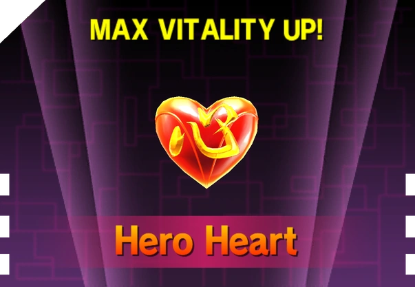 Hero Hearts are health upgrades that are formed when 4 Hero Heart Fragments are gathered together. Obtaining a Hero Heart permanently increases your maximum Vitality. A total of 5 Hero Hearts can be formed in the game.