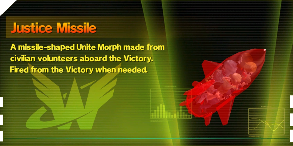 Justice Missiles are combat items that can be used to bombard a targeted area with missiles, dealing damage to enemies. Justice Missiles are unique in that they can only be obtained by rescuing citizens after reaching the maximum team size within a level: For every 10 citizens rescued, a Justice Missile is created.