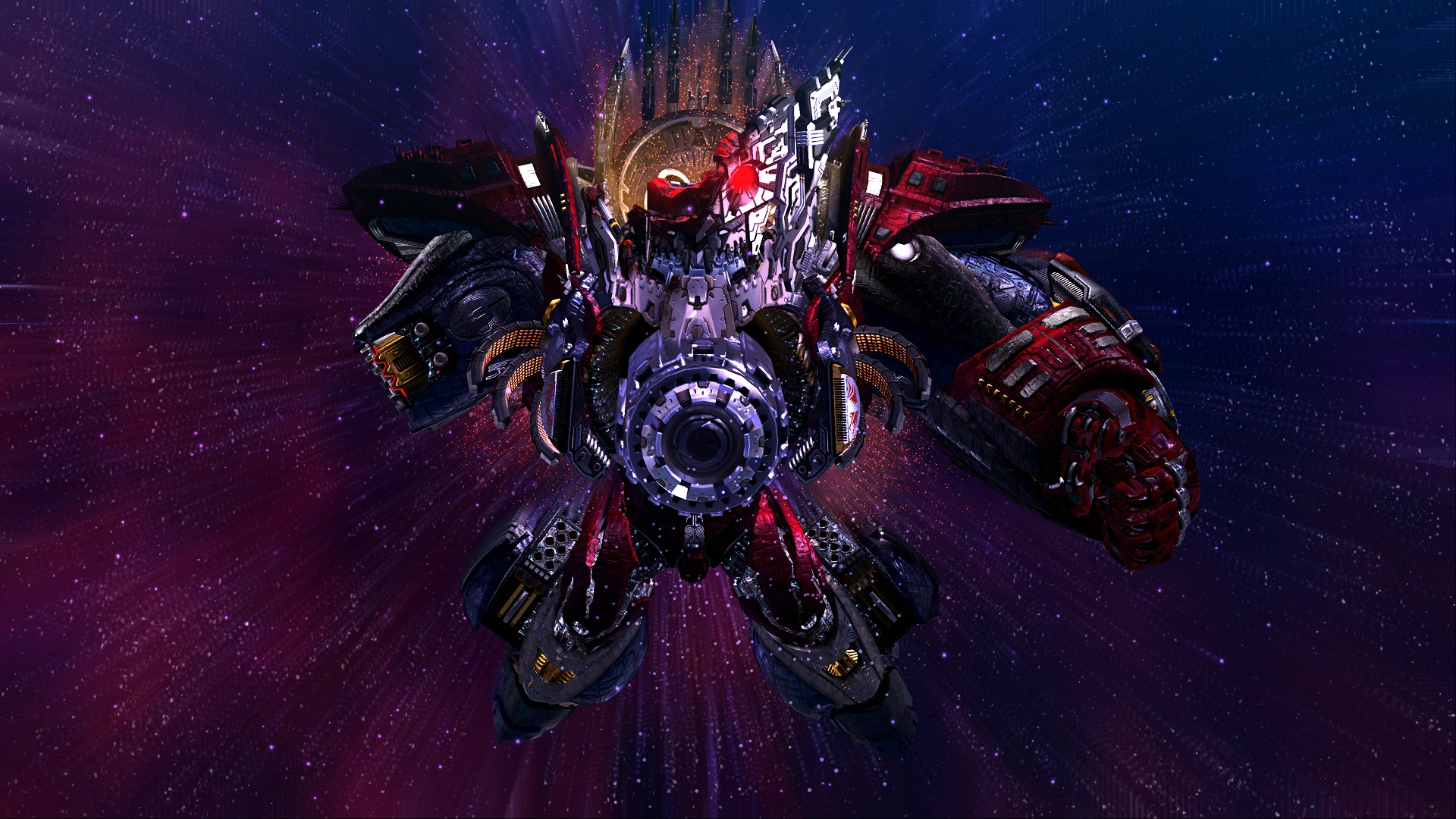 Jergingha's Planet Destruction Form is an astronomically huge humanoid mecha, formed from GEATH-Wahksay shedding its outer fortress components to reveal the Supreme Overlord's ultimate form.